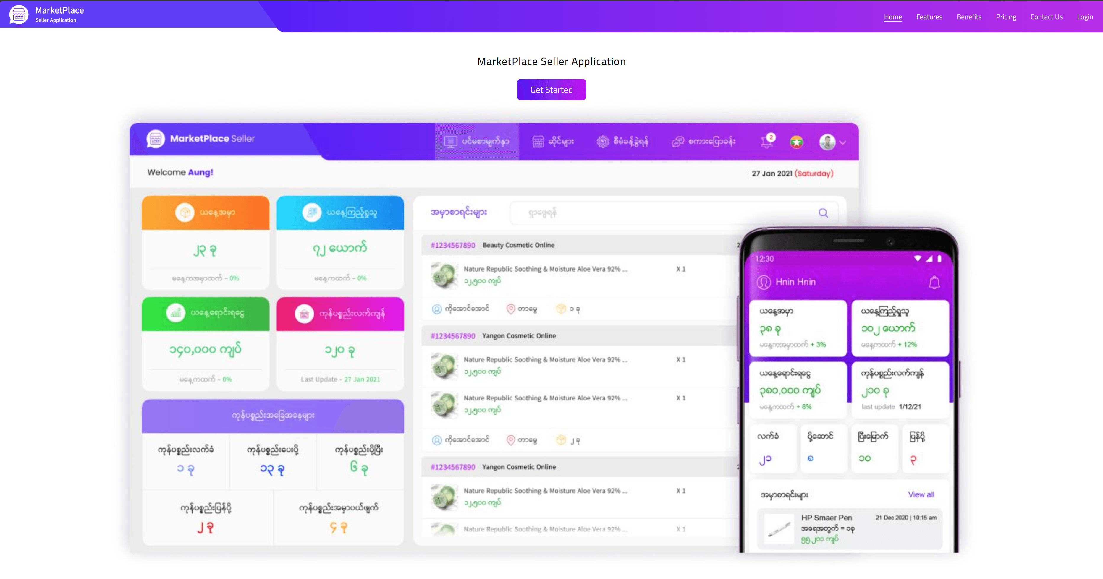The seller.marketplace.com.mm platform, constructed using Laravel Inertia,Vue3 functions as a highly effective system for overseeing inventory and processing orders. Crafted to support merchants, this initiative endeavors to simplify the delivery process and improve convenience for all stakeholders.